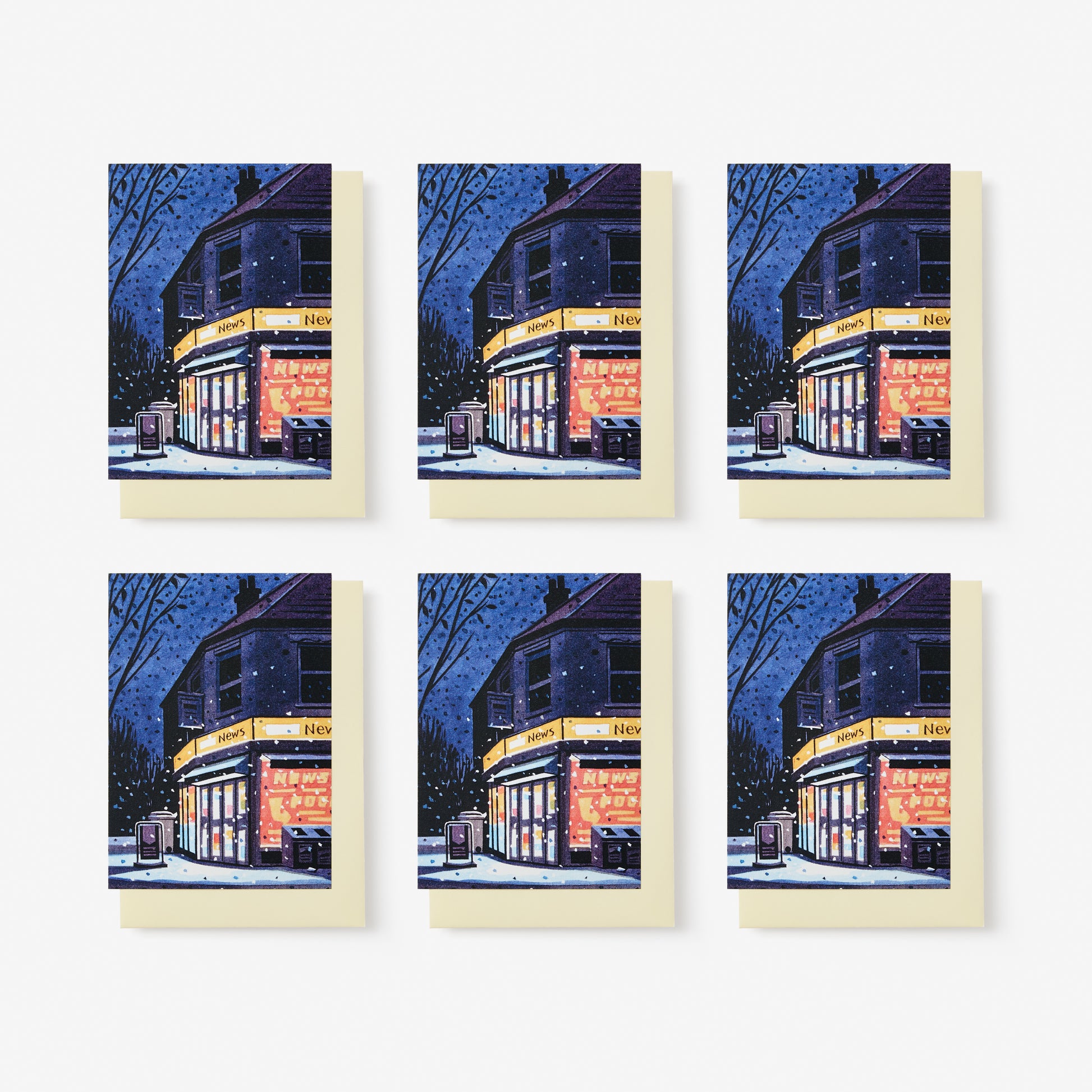 Pack of six A6 festive cards featuring artwork by Jon McNaught.